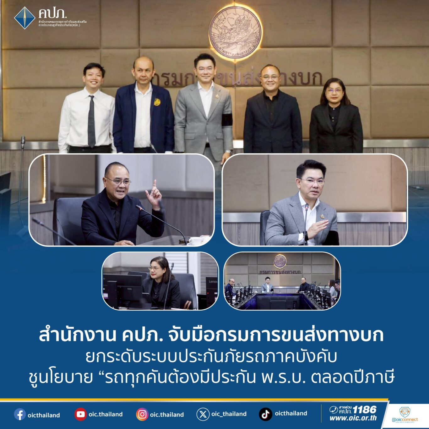 เมื่อวันที่ 4 กุมภาพันธ์ 2569 นายชูฉัตร ประมูลผล เลขาธิการคณะกรรมการกำกับและส่งเสริมการประกอบธุรกิจประกันภัย (เลขาธิการ คปภ.) ได้ประชุมหารือร่วมกับ นายสรพงษ์ ไพฑูรย์พงษ์ อธิบดีกรมการขนส่งทางบก ณ ห้องประชุมกรมการขนส่งทางบก เพื่อยกระดับระบบประกันภัยรถภาคบังคับ (พ.ร.บ.) ให้เป็นกลไกหลักในการคุ้มครองผู้ประสบภัยจากรถอย่างมีประสิทธิภาพ และลดปัญหารถขาดความคุ้มครองในระหว่างรอบปีภาษีในการประชุมดังกล่าว สำนักงาน คปภ. ได้เน้นย้ำแนวทางเชิงนโยบายในการเสริมสร้างความมั่นคงของระบบประกันภัยรถภาคบังคับ โดยเสนอหลักการสำคัญให้ “รถทุกคันต้องมีความคุ้มครองตามกรมธรรม์ประกันภัยรถภาคบังคับอย่างต่อเนื่องตลอดปีภาษี” เพื่อให้การประกันภัยรถภาคบังคับ (พ.ร.บ.) เป็นหลักประกันความปลอดภัยของประชาชนอย่างแท้จริง ไม่ใช่เพียงเงื่อนไขตามกฎหมาย