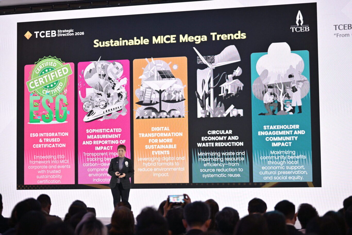 ดร. ศุภวรรณ ตีระรัตน์ ผู้อำนวยการสำนักงานส่งเสริมการจัดประชุมและนิทรรศการ (องค์การมหาชน) หรือ ทีเส็บ กล่าวถึงทิศทางการดำเนินงานปี 2569 ว่า ทีเส็บได้กำหนดวิสัยทัศน์ให้ประเทศไทยก้าวสู่การเป็นผู้นำไมซ์ระดับโลกบนรากฐานที่แข็งแรงในฐานะ “Global-Asia’s Trusted Gateway” หรือ “ประตูสู่เอเชียที่ทั่วโลกให้ความไว้วางใจ” โดยมุ่งให้อุตสาหกรรมไมซ์ไทยสร้างผลกระทบระดับสูง (High-Impact) ต่อเศรษฐกิจและอุตสาหกรรมที่จัดงาน พร้อมส่งมอบประสบการณ์ที่ทรงคุณค่าและยั่งยืน (Transformative, High-Value, Sustainable Experiences) เพื่อขับเคลื่อนวิสัยทัศน์ดังกล่าว ทีเส็บได้ปรับกลยุทธ์ “TCEB Go” ให้มีความแหลมคมและชัดเจนยิ่งขึ้น โดยเน้นประเด็นสำคัญ ได้แก่ ส่งเสริมอุตสาหกรรมที่เป็นจุดแข็งของประเทศไทยให้เป็นจุดขายระดับนานาชาติ ผลักดันหลักการ ESG (Environmental, Social, Governance) ให้บูรณาการอยู่ในทุกงานไมซ์ ยกระดับมาตรฐานความยั่งยืนของไมซ์ไทยให้ได้รับการรับรองตามมาตรฐานสากล สร้างแต้มต่อบ่มเพาะและพัฒนาขีดความสามารถของผู้ประกอบการอย่างต่อเนื่อง พัฒนา Data, Intelligence และนวัตกรรม ให้เป็นเครื่องมือหลักในการขับเคลื่อนทั้งการดำเนินงานและการตลาด และ Fast Track ผ่อนปรนกฎระเบียบและเพิ่มความคล่องตัวในการจัดงานในประเทศไทย โดยเสริมสร้างความร่วมมือกับหน่วยงานภาครัฐ ทั้งหมดนี้เพื่อให้ไมซ์ไทยไม่เพียงเติบโตในเชิงปริมาณ แต่เติบโตอย่างมีคุณภาพ มีความน่าเชื่อถือ และยั่งยืนในระยะยาว