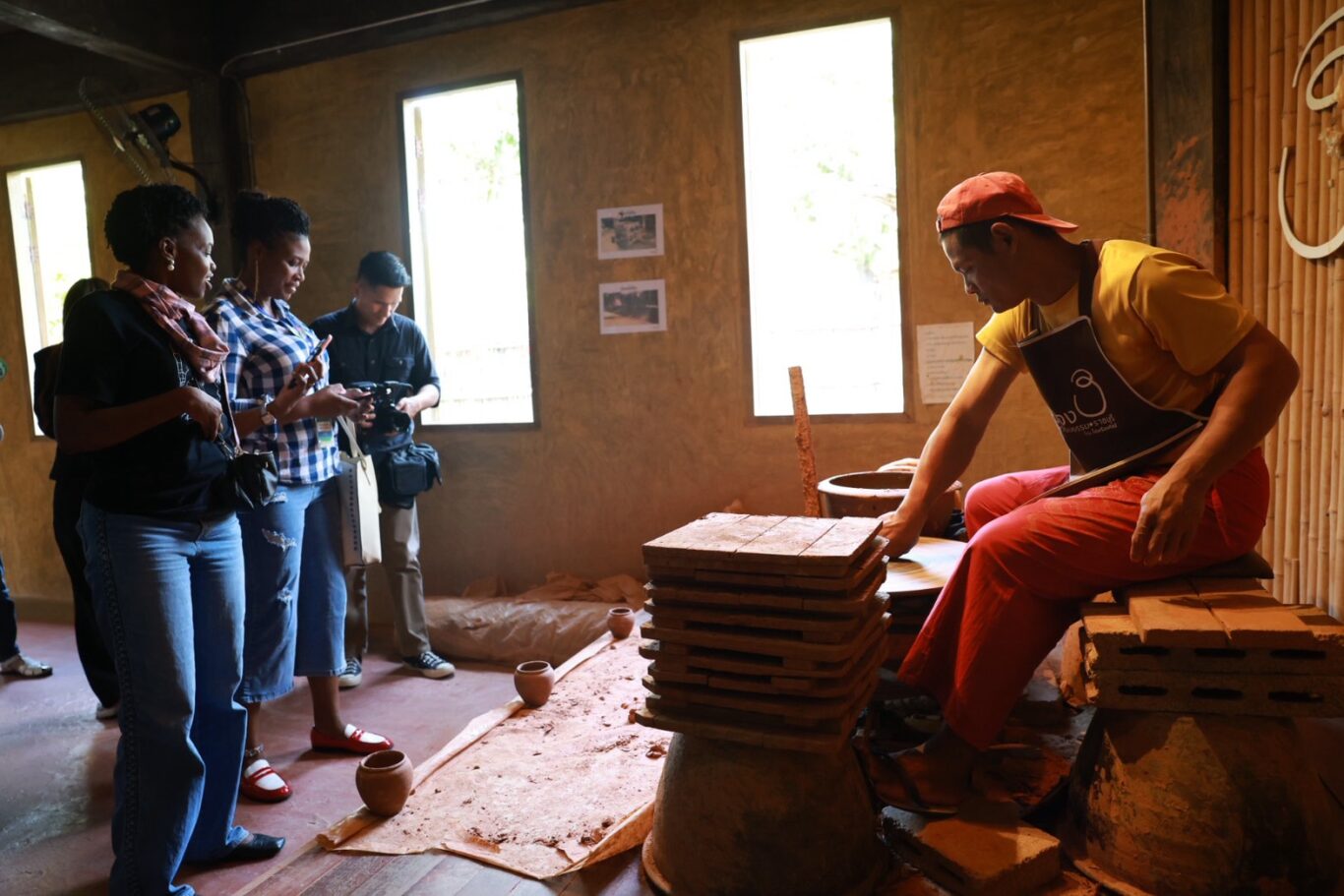 จากนั้น เดินทางไปยังร้านโอ่งข้าวโอ่งน้ำ จังหวัดราชบุรี หรือโครงการเรื่องของโอ่ง – Pottery Legend) ที่ประกอบธุรกิจร้านอาหาร คาเฟ่ และศูนย์การเรียนรู้เรื่องโอ่งมังกรที่มีชื่อเสียง โดดเด่นด้วยอาหารไทยฟิวชั่น เมนูเด็ดเช่น ไก่อบโอ่ง ข้าวเหนียวมะม่วง เสิร์ฟในภาชนะโอ่งจิ๋ว โดยใช้ภูมิปัญญาท้องถิ่นควบคู่กับการพัฒนารูปแบบผลิตภัณฑ์และบรรจุภัณฑ์ให้ตอบโจทย์ตลาดยุคใหม่ สร้างอัตลักษณ์สินค้าเกษตรชุมชน และช่วยยกระดับรายได้ให้กับเกษตรกรในพื้นที่อย่างเป็นรูปธรรม