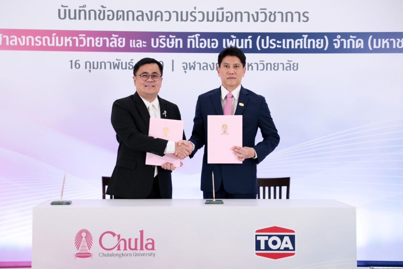 โดยมี นายจตุภัทร์ ตั้งคารวคุณ ประธานเจ้าหน้าที่บริหาร TOA และ ศ.ดร.วิเลิศ ภูริวัชร อธิการบดีจุฬาลงกรณ์มหาวิทยาลัย ร่วมลงนาม และแสดงวิสัยทัศน์ ณ เรือนจุฬานฤมิต จุฬาลงกรณ์มหาวิทยาลัย