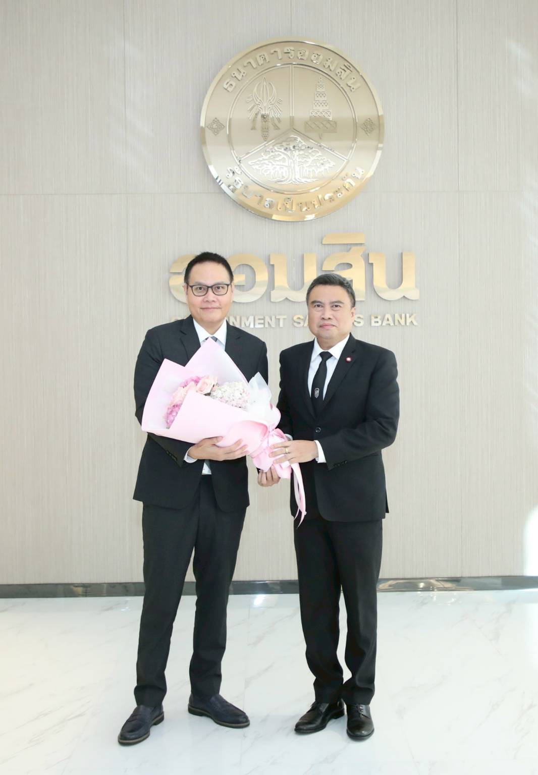 ดร.พรชัย ฐีระเวช อธิบดีกรมสรรพสามิต ในฐานะประธานกรรมการธนาคารออมสิน ให้การต้อนรับและมอบช่อดอกไม้แสดงความยินดีกับกรรมการธนาคารออมสิน จำนวน 6 ท่าน ที่ได้รับการแต่งตั้งจากคณะรัฐมนตรี เมื่อวันที่ 10 กุมภาพันธ์ 2569 ได้แก่ นายเศรษฐจักร ลียากาศ นายเดชา พฤกษ์พัฒนรักษ์ นายวรวิทย์ ชัยลิมปมนตรี นายปกรณ์ อาภาพันธุ์ นายสุพัฒน์ เมธีวรพจน์ และ นายรังสรรค์ ธรรมมณีวงศ์ ในโอกาสร่วมประชุมคณะกรรมการธนาคารออมสิน ครั้งที่ 3/2569 ณ อาคารออมสินพิพัฒน์ ธนาคารออมสิน สำนักงานใหญ่ เมื่อวันที่ 20 กุมภาพันธ์ 2569
