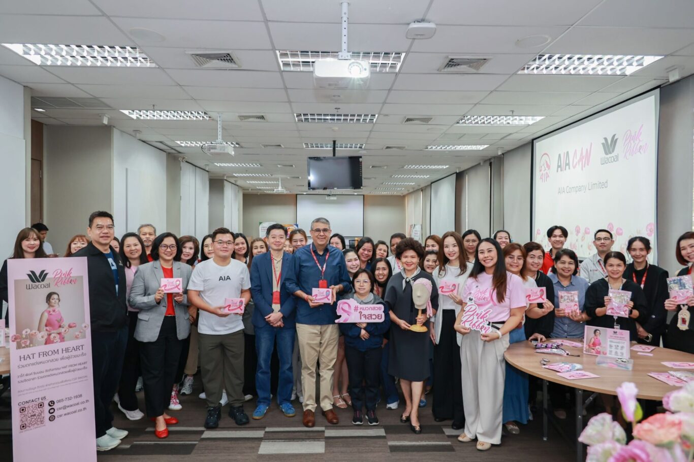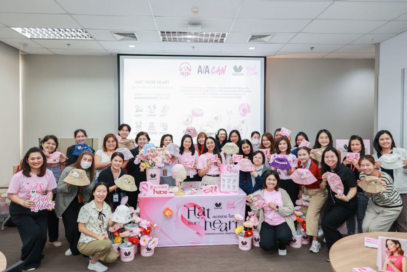 เอไอเอ ประเทศไทย จัดกิจกรรม “LOVE YOUR VIBES” ชวนพนักงานมาเติมพลังดี ๆ ทั้งสุขภาพ ไลฟ์สไตล์ และการดูแลตัวเองแบบรอบด้าน ในเดือนแห่งความรักที่ผ่านมา โดยมี นิคฮิล แอดวานี ประธานเจ้าหน้าที่บริหาร พร้อมคณะผู้บริหารระดับสูงเข้าร่วมกิจกรรมกับเพื่อนพนักงาน ซึ่งงานนี้จัดเต็มด้วยกิจกรรมหลากหลายที่สนุก เข้าถึงง่าย และตอบโจทย์ทุกสาย ไม่ว่าจะสายสุขภาพ สายกิจกรรม สายชอป หรือสายมู พร้อมจับมือ วาโก้ จัดกิจกรรมเพื่อช่วยเหลือผู้ป่วยมะเร็งทรวงอก ผ่านแคมเปญ “LOVE THROUGH CARE: Hat for Heart หนึ่งหมวก หนึ่งกำลังใจ” ที่เปิดให้พนักงานตกแต่งหมวกสุดสร้างสรรค์เพื่อมอบและเป็นกำลังใจให้แก่ผู้ป่วยมะเร็ง ต่อด้วยความรู้ด้านสุขภาพจากกิจกรรม “LOVE YOUR WELLBEING” Health Talk ตอน “มะเร็งวายร้าย…วัยรัก” โดยผู้เชี่ยวชาญด้านสูตินรีเวช ให้ข้อมูลสำคัญเกี่ยวกับโรคมะเร็งที่พบในผู้หญิงให้พนักงานรับชมผ่านช่องทางออนไลน์