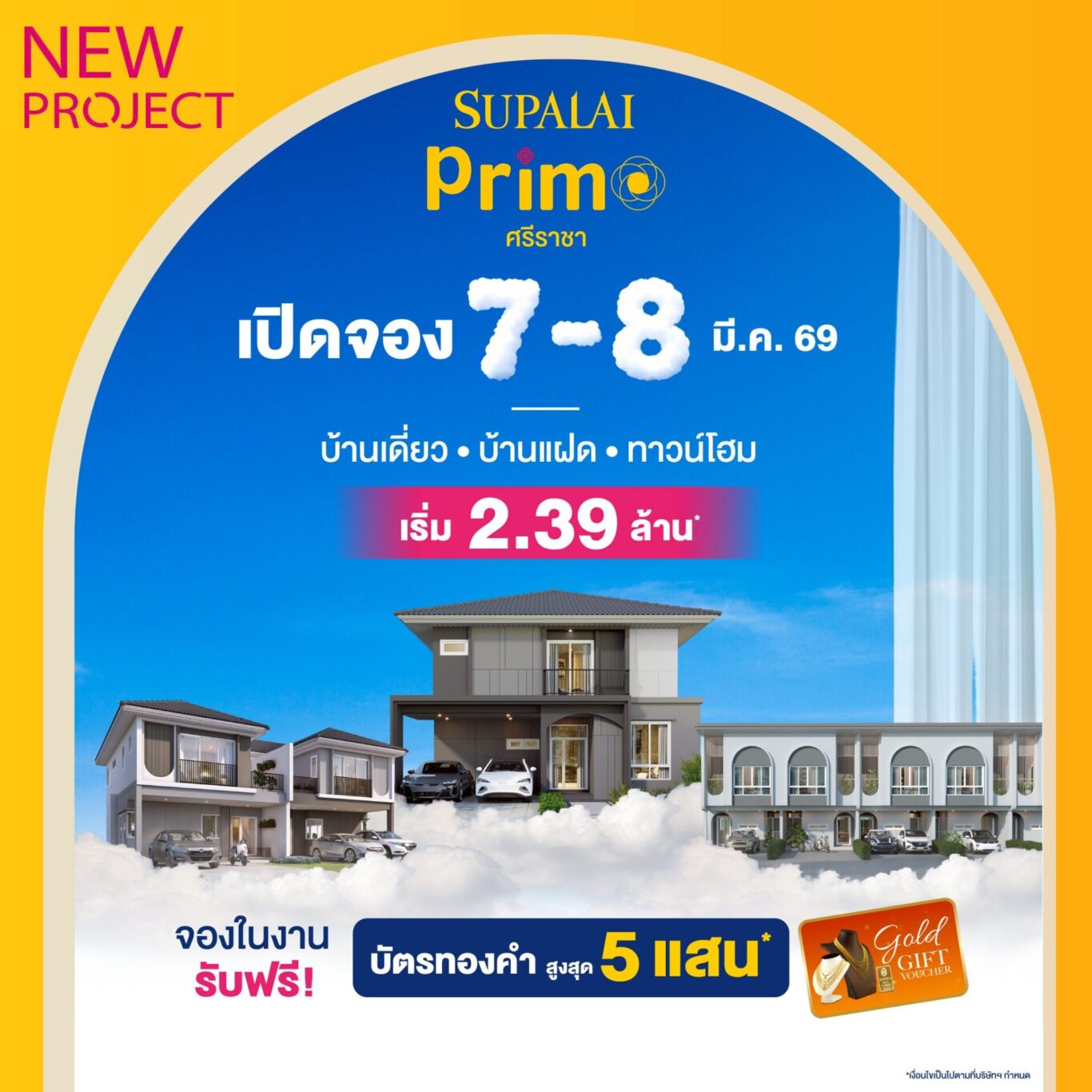 เตรียมพบกับการเปิดจองครั้งแรกอย่างเป็นทางการในวันที่ 7-8 มีนาคม 2569 นี้ กับโอกาสเป็นเจ้าของก่อนใคร พร้อมข้อเสนอพิเศษเฉพาะ 2 วันเท่านั้น! รับ Voucher ทองคำสูงสุด 500,000 บาท* ราคาเริ่มต้นเพียง 2.39 ล้านบาท*