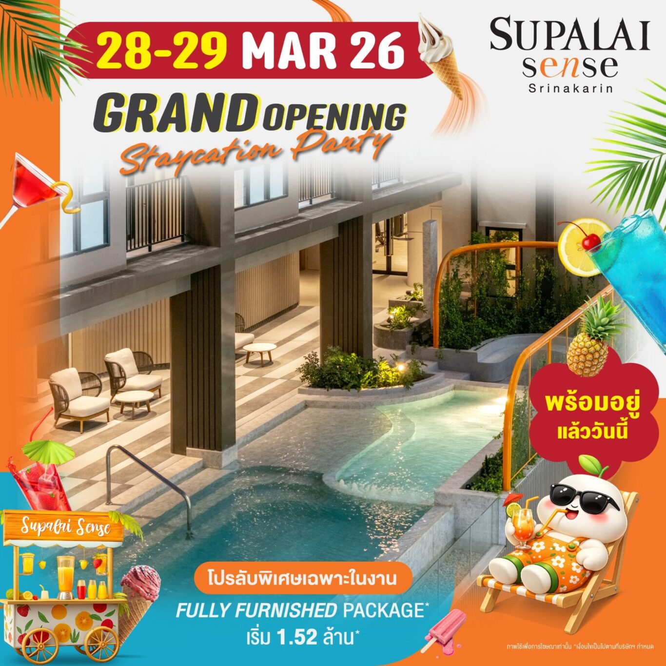 “ศุภาลัย เซนส์ ศรีนครินทร์” ชวนสัมผัสตึกจริง ห้องจริง เริ่ม 1.52 ลบ.ฟรี FULLY FURNISHED PACKAGE เฉพาะในงาน GRAND OPENING 28–29 มี.ค. นี้ …หยุดจ่ายค่าเช่าให้เสียเปล่า แล้วมาเป็นเจ้าของคอนโดฯ ฟีลรีสอร์ตที่คุ้มที่สุดในนาทีนี้!