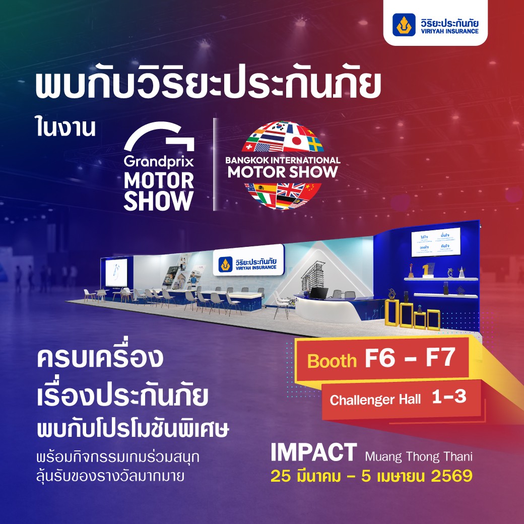 บริษัท วิริยะประกันภัย จำกัด (มหาชน) ยกทัพผลิตภัณฑ์และบริการด้านประกันภัยเข้าร่วมงาน “Bangkok International Motor Show ครั้งที่ 47” เพื่อนำเสนอความคุ้มครองที่ตอบโจทย์ไลฟ์สไตล์ของผู้ใช้รถยนต์และผู้บริโภคยุคใหม่ พร้อมเติมความอุ่นใจในทุกเส้นทางและการใช้ชีวิตประจำวัน ณ บูธ F6 – F7 อาคารชาเลนเจอร์ 1 – 3 ศูนย์แสดงสินค้าและการประชุม อิมแพ็ค เมืองทองธานี ระหว่างวันที่ 25 มีนาคม – 5 เมษายน 2569