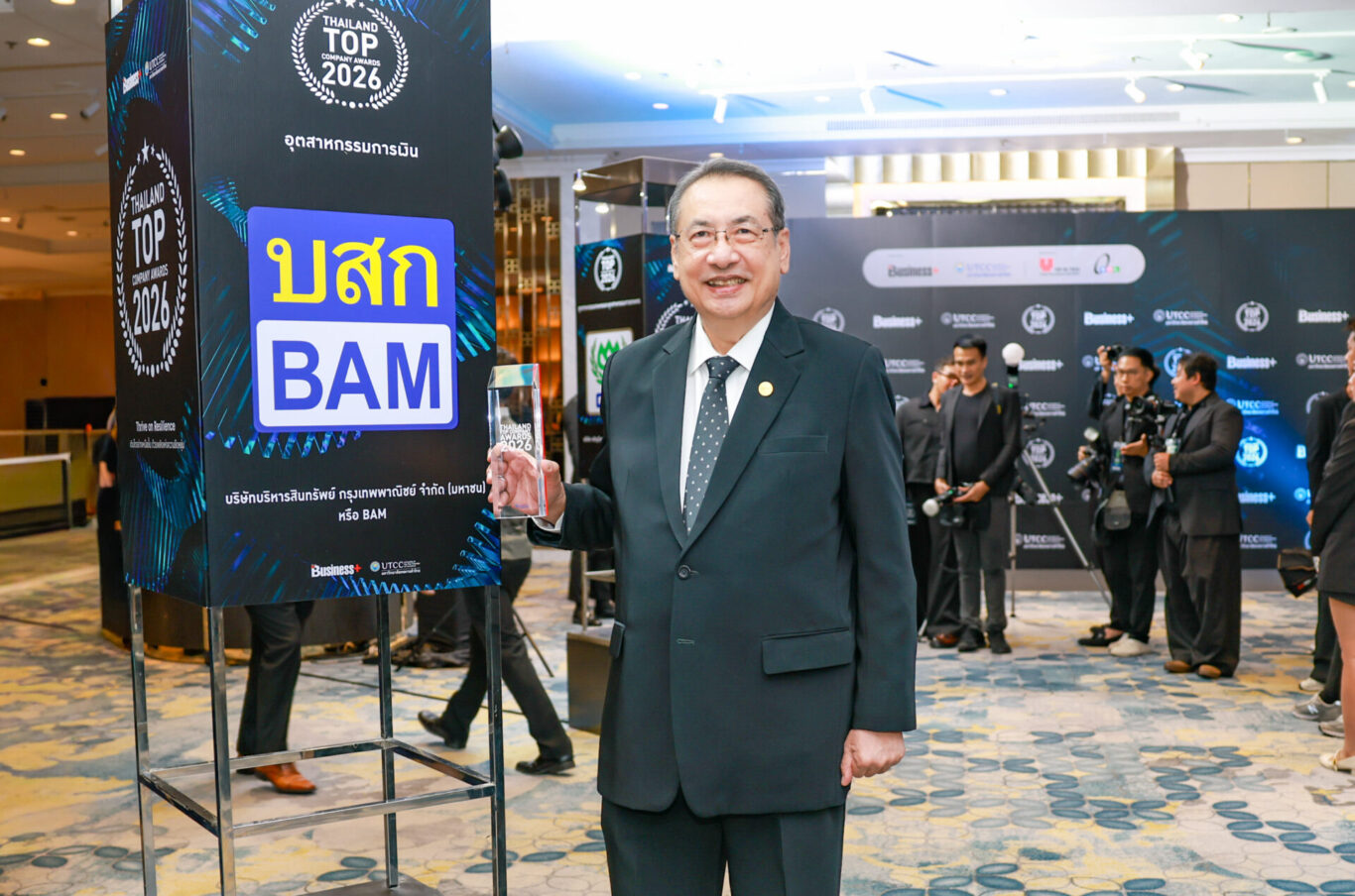 นายวสันต์ เทียนหอม กรรมการอิสระ ประธานกรรมการตรวจสอบ และประธานคณะกรรมการสรรหาและพิจารณาค่าตอบแทน บริษัทบริหารสินทรัพย์ กรุงเทพพาณิชย์ จำกัด (มหาชน) หรือ BAM เป็นผู้แทนรับรางวัล Thailand Top Company Awards 2026 ประเภทรางวัลชนะเลิศ อุตสาหกรรมการเงินจาก ฯพณฯ ศาสตราจารย์เกียรติคุณ นายแพทย์เกษม วัฒนชัย จัดโดยนิตยสาร Business+ บริษัท เออาร์ไอพี จำกัด (มหาชน) ร่วมกับ มหาวิทยาลัยหอการค้าไทย