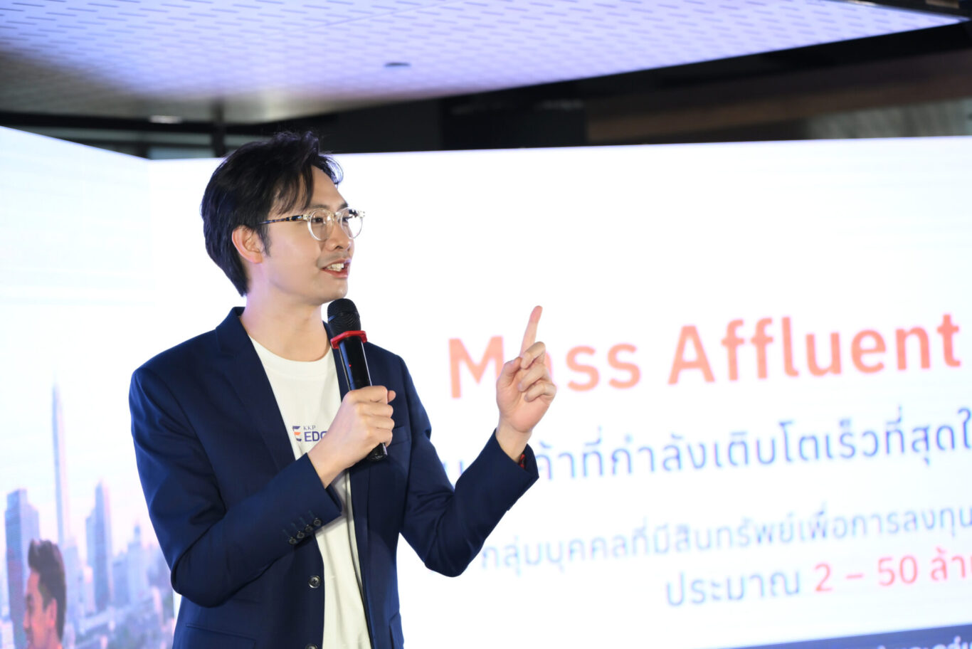 ในตลาดปัจจุบัน กลุ่ม Mass Affluent คือกลุ่มที่กำลังเติบโตอย่างรวดเร็ว KKP มีมูลค่าสินทรัพย์ภายใต้การบริหาร (AUM) ในกลุ่มนี้กว่า 150,000 ล้านบาท โดย KKP มองเห็นศักยภาพชัดเจนว่า จะเติบโตได้ถึง 70% ในอีก 3 ปีข้างหน้า จากกลุ่มคนรุ่นใหม่เริ่มตื่นตัวว่าการเก็บเงินไปแต่ละวันไม่เพียงพอ แต่ต้องดำเนินไปตามแผนทางการเงินที่ออกแบบมาอย่างดี KKP EDGE จะเข้ามารองรับความต้องการของคนกลุ่มนี้ และพร้อมดูแลให้เขาเติบโตเป็นกลุ่มลูกค้า High Net Worth ที่แข็งแกร่งต่อไป”