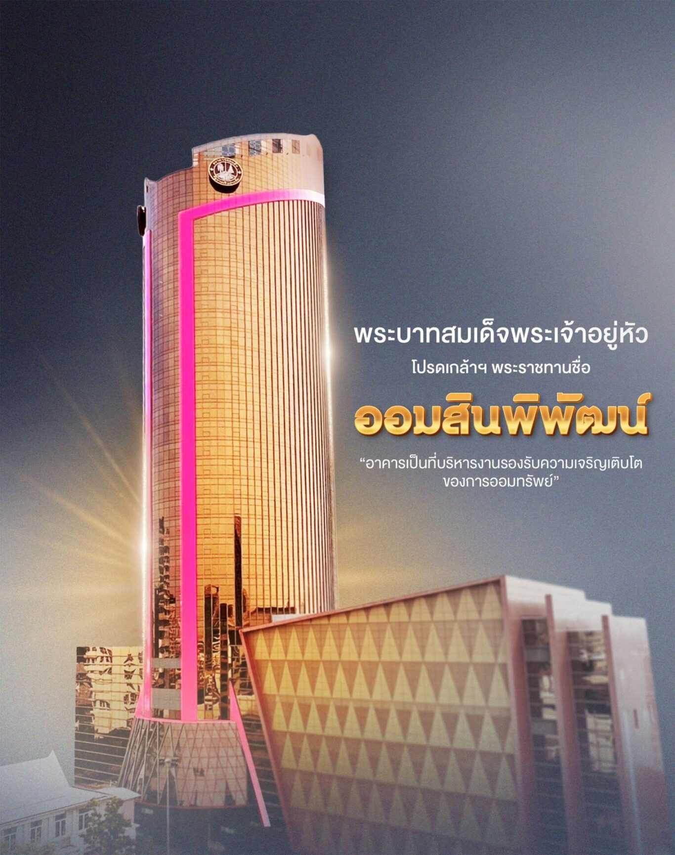 นายพรชัย ฐีระเวช อธิบดีกรมสรรพสามิต ในฐานะประธานกรรมการธนาคารออมสิน เป็นประธานพิธีเปิด “อาคารออมสินพิพัฒน์” อาคารสำนักงานใหม่ภายในธนาคารออมสินสำนักงานใหญ่ ถนนพหลโยธิน พร้อมด้วย นายทรงพล ชีวะปัญญาโรจน์ ผู้อำนวยการธนาคารออมสิน โดยอาคารดังกล่าวได้รับพระมหากรุณาธิคุณจากพระบาทสมเด็จพระวชิรเกล้าเจ้าอยู่หัว โปรดเกล้าฯ พระราชทานนาม “ออมสินพิพัฒน์” อันมีความหมายว่า “อาคารเป็นที่บริหารงานรองรับความเจริญเติบโตของการออมทรัพย์” นับเป็นสิริสวัสดิ์พิพัฒนมงคลอย่างหาที่สุดมิได้