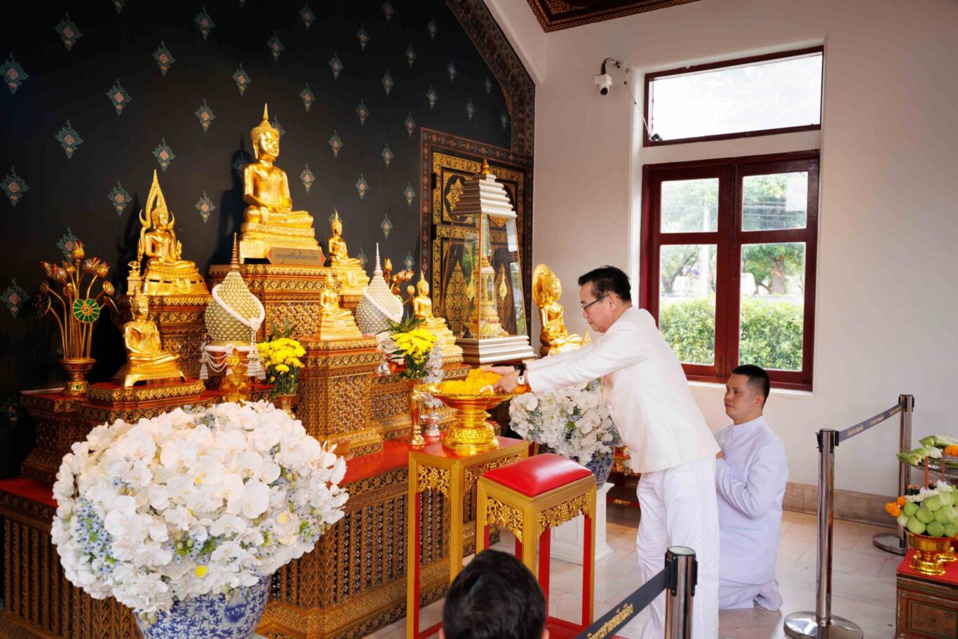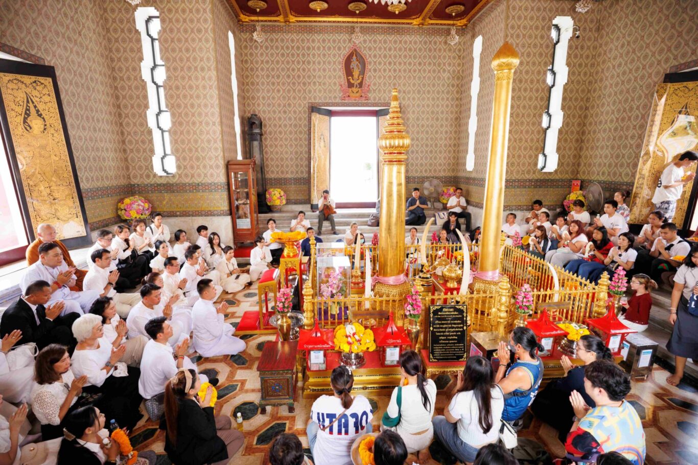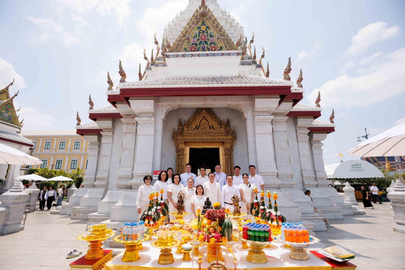 ในโอกาสนี้ คณะได้เข้าน้อมกราบสักการะพระพุทธมหามณีรัตนปฏิมากร (พระแก้วมรกต) ณ วัดพระศรีรัตนศาสดาราม ซึ่งเป็นพระพุทธรูปคู่บ้านคู่เมืองของไทย เนื่องในวันฤกษ์อันเป็นมงคล จากนั้นได้ประกอบพิธีบวงสรวง ณ ศาลหลักเมืองกรุงเทพมหานคร ตามแบบพิธีพราหมณ์ เพื่อความเป็นสิริมงคลและความเจริญรุ่งเรืองของบ้านเมือง ทั้งนี้ ได้รับความเมตตาจากพระอาจารย์ณัฐจักร คุณะจักโก (ตุ๊ณัฐ) วัดถ้ำเมืองนะ จังหวัดเชียงใหม่ เข้าร่วมประกอบพิธีและเจริญพระพุทธมนต์ เพื่อเสริมความเป็นสิริมงคลแก่ผู้เข้าร่วมงาน