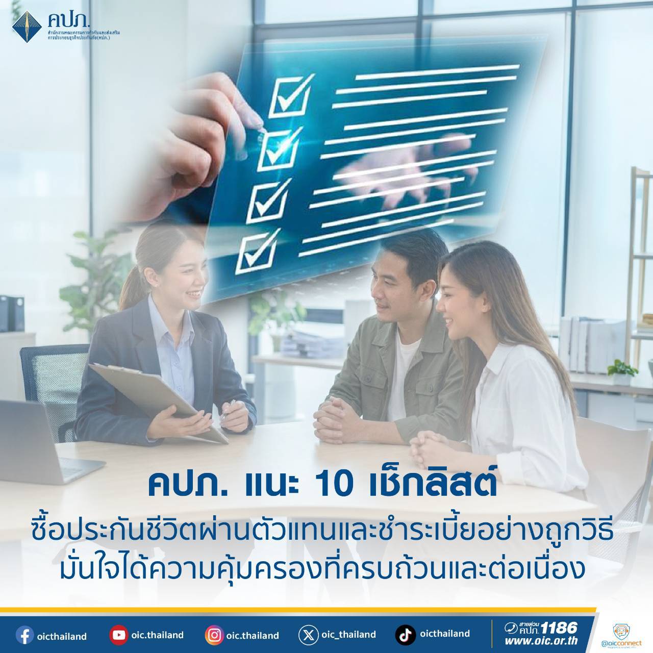 คปภ. แนะ 10 เช็กลิสต์ ซื้อประกันชีวิตผ่านตัวแทนและชำระเบี้ยอย่างถูกวิธี  มั่นใจได้ความคุ้มครองที่ครบถ้วนและต่อเนื่อง