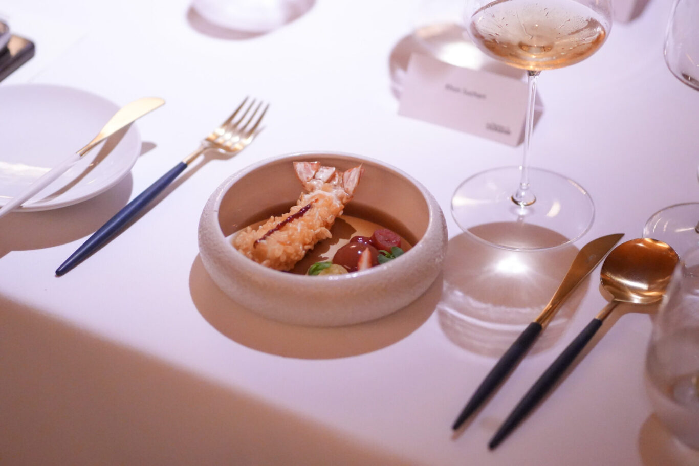 The Art of Fine Wine: A Private Dinner เป็นกิจกรรมแทนคำขอบคุณกลุ่มลูกค้าคนสำคัญที่ให้ความไว้วางใจในบริการทางการเงินและความคุ้มครอง “ความใส่ใจ” ถูกถ่ายทอดผ่านการคัดสรรร้านอาหารภายใต้บรรยากาศอบอุ่นกลิ่นอายสไตล์ฝรั่งเศสที่ “บ้านของดูนัง” ร้านอาหารสไตล์ Fine Dining ของ “เชฟอาโน ดูนัง” ที่นำเสนออาหารฝรั่งเศสร่วมสมัย และคว้าดาวมิชลิน The MICHELIN Guide Thailand 2023 1 ดวง และ เชฟอาโน ยังเป็นอดีตหัวหน้าเชฟร้านอาหารระดับมิชลินสตาร์ดาว 2 ดวง ที่ Le Normandie สำหรับมื้อค่ำในงานนี้เชฟได้รังสรรค์เมนู 6 คอร์สที่เต็มไปด้วยความพิถีพิถัน สีสัน รสชาติ และประสบการณ์ที่บ่งบอกตัวตนและความใส่ใจในทุกจานและเพื่อเติมเต็มความสุขในมื้ออาหาร