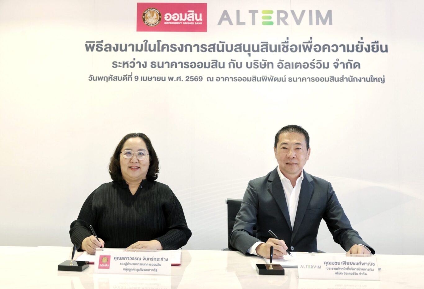 ด้าน นายบวร เพียรพงศ์พาณิช ประธานเจ้าหน้าที่บริหารฝ่ายการเงิน บริษัท อัลเตอร์วิม จํากัด กล่าวว่า การสนับสนุนสินเชื่อเพื่อความยั่งยืน (Green Finance) จากธนาคารออมสินครั้งนี้ บริษัทจะนำไปใช้ลงทุนในการติดตั้งระบบผลิตไฟฟ้าจากพลังงานแสงอาทิตย์และพลังงานทดแทนรูปแบบอื่น ๆ ให้กับกลุ่มบริษัท ภายใต้เครือเจริญโภคภัณฑ์ เป็นไปตามแนวทางการดำเนินธุรกิจที่รับผิดชอบต่อสังคมและเป็นมิตรกับสิ่งแวดล้อม ส่งเสริมการใช้พลังงานสะอาด ลดการปล่อยก๊าซเรือนกระจก สอดคล้องกับวิสัยทัศน์การขับเคลื่อนเป้าหมายและยุทธศาสตร์ด้านความยั่งยืนของกลุ่มเจริญโภคภัณฑ์ ในการเป็นองค์กรที่มีความเป็นกลางทางคาร์บอน (Carbon Neutrality) ภายในปี 2030 และ ลดการปล่อยก๊าซเรือนกระจกสุทธิเป็นศูนย์ (Net Zero Emissions) ภายในปี 2050