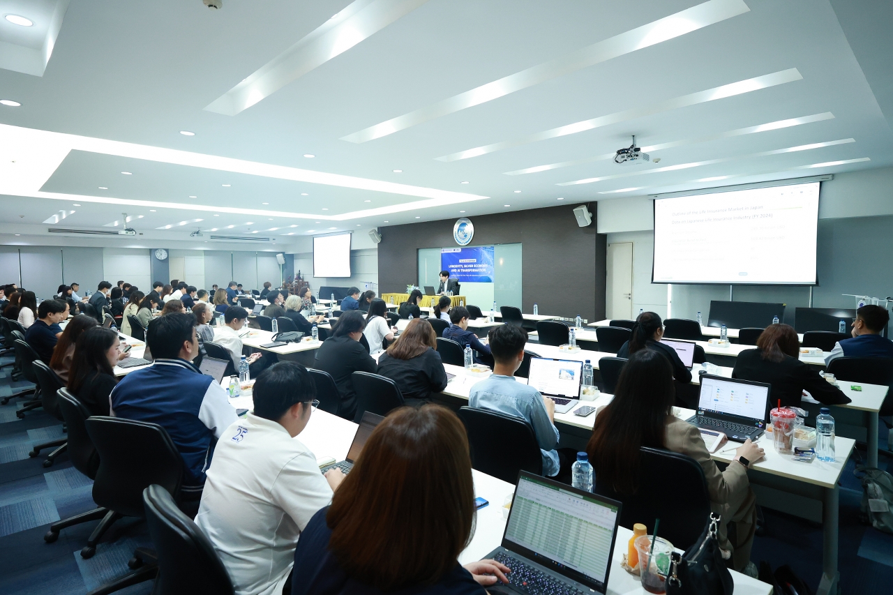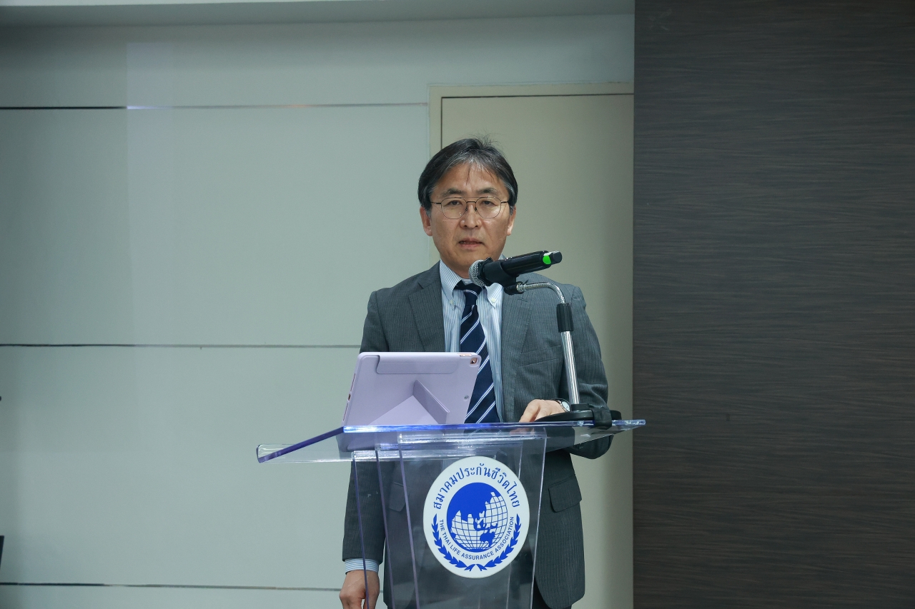 สำหรับการสัมมนาแบ่งออกเป็น 2 ช่วงซึ่งครอบคลุมทั้งด้านโครงสร้างตลาดและวิวัฒนาการทางเทคโนโลยี ดังนี้ ช่วงเช้า บรรยายโดย Mr. Yuji Nitta จากสมาคมประกันชีวิตแห่งญี่ปุ่น (LIAJ) ในหัวข้อ “Longevity and Silver Economy: Insights from the Japanese Life Insurance Industry” เป็นการนำเสนอภาพรวมตลาดประกันชีวิตญี่ปุ่นที่มีอัตราการถือครองกรมธรรม์สูงถึงร้อยละ 89 ของครัวเรือน พร้อมเผยกลยุทธ์การรับมือความท้าทายในสังคมสูงวัย (Super-aged Society) ซึ่งประชากรมีอายุขัยเฉลี่ยยืนยาวขึ้นและมีแนวโน้มผู้ป่วยภาวะสมองเสื่อมเพิ่มสูงถึงร้อยละ 18 ในอนาคต โดย LIAJ ได้แนะแนวทางการพัฒนาผลิตภัณฑ์ที่ตอบโจทย์ความกังวลด้านค่าใช้จ่ายหลังเกษียณและการดูแลระยะยาว อาทิ ประกันบำนาญตลอดชีพ (Lifetime Annuity) ประกันโรคสมองเสื่อม (Dementia Insurance) และการใช้แอปพลิเคชันดิจิทัลเพื่อส่งเสริมสุขภาพและตรวจเช็กสมรรถภาพทางสมอง ภายใต้หลักการ 3Ps (Preparedness, Prevention, Protection) เพื่อสร้างความพร้อม การป้องกัน และความคุ้มครองที่สมบูรณ์ในยุคชีวิต 100 ปี
