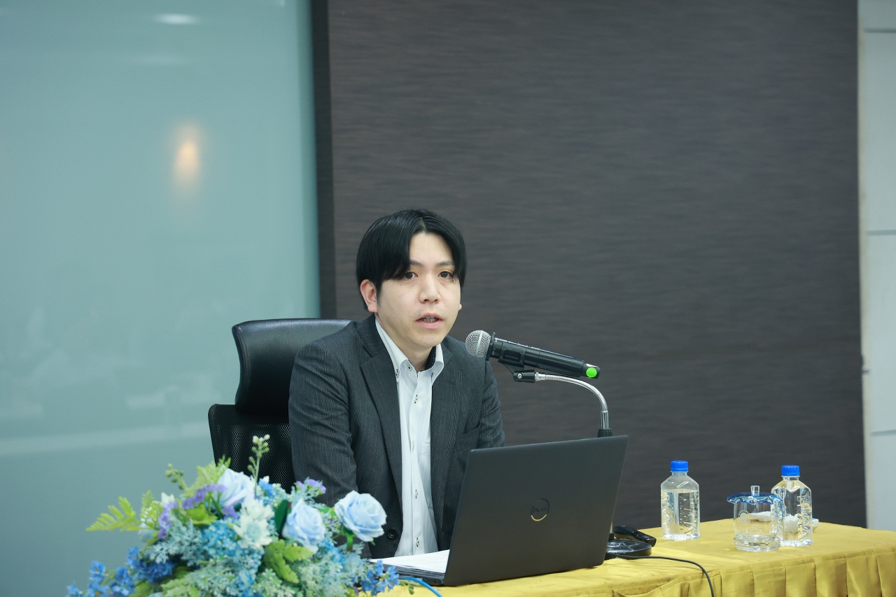 ช่วงบ่าย บรรยายโดย Mr. Yosuke Fujisawa ผู้เชี่ยวชาญด้านวิทยาศาสตร์ข้อมูล (Data Science Officer) จาก Sumitomo Life Insurance ในหัวข้อ “Data Science and AI Adoption in Japanese Financial Institutions” นำเสนอความก้าวหน้าของการใช้เทคโนโลยี AI ในสถาบันการเงินญี่ปุ่นที่มีสัดส่วนการใช้งานสูงถึงร้อยละ 93.1 โดยเน้นกรณีศึกษาการใช้งานจริง (Use Cases) อาทิ การใช้ Generative AI เพิ่มผลิตภาพในองค์กรการพัฒนา AI Avatar เพื่อฝึกซ้อมทักษะการขาย (Role-playing) และการใช้โมเดลวิเคราะห์ข้อมูลสุขภาพเพื่อคาดการณ์ความเสี่ยงโรค